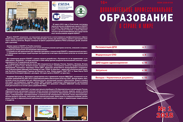 Наталья Жукова2018-10-01T07:54:50+00:00В начале сентября вышел из печати сборник материалов XVI всероссийской научно–практической конференции «Профессиональное образование для развития современной экономики», которая состоялась 30 мая – 1 июня 2018 года в Академии Пастухова (г. Ярославль). Представленные в сборнике материалы отражают актуальные проблемы практической реализации дополнительного профессионального образования в современных условиях, проблемы модернизации системы СПО, [...]