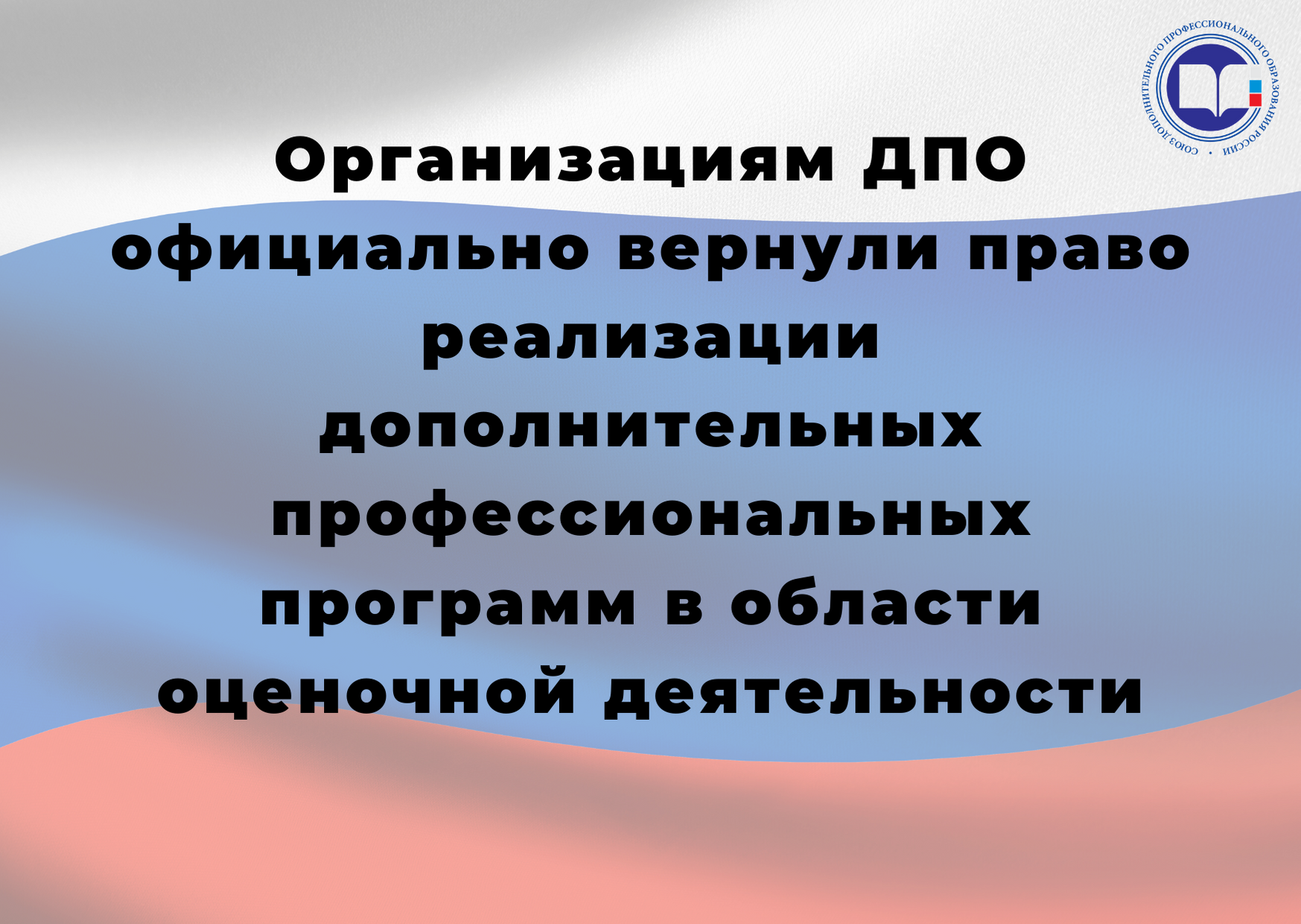 Анастасия Виноградова2020-03-23T15:26:32+00:00Наконец-то справедливость восторжествовала! Организациям ДПО официально вернули право реализации дополнительных профессиональных программ в области оценочной деятельности. 18 марта 2020 года в Федеральный закон от 29 июля 1998 года N 135-ФЗ "Об оценочной деятельности в Российской Федерации" внесены изменения, которые мы так долго продвигали через Государственную Думу Российской Федерации. Теперь в соответствии с Федеральным [...]