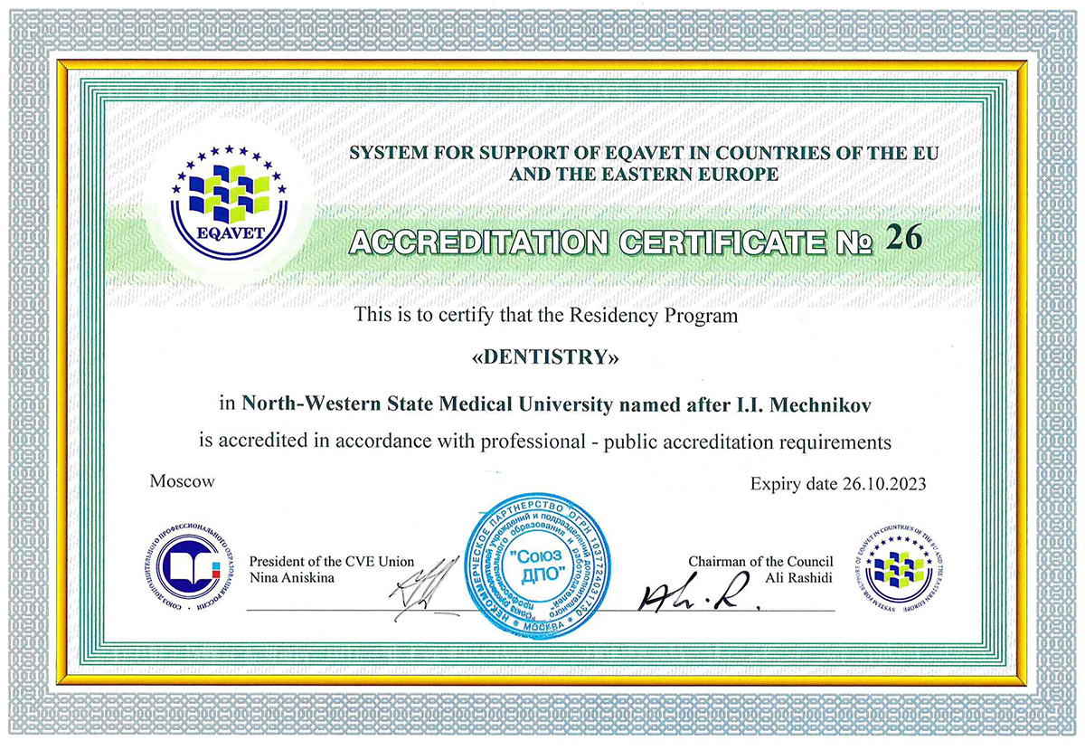 Основная профессиональная образовательная программа высшего образования — программа специалитета по специальности 31.05.03 «Стоматология»